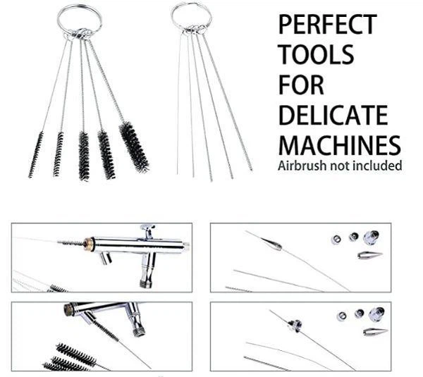 Airbrush 12 Piece Airbrush Cleaning Kit - 5 pc Cleaning Needles, 5 pc Cleaning Brushes, & 1 Wash Needle AB-C5A/AB-C5B/AB-R1/AB-R1P/AB-RC